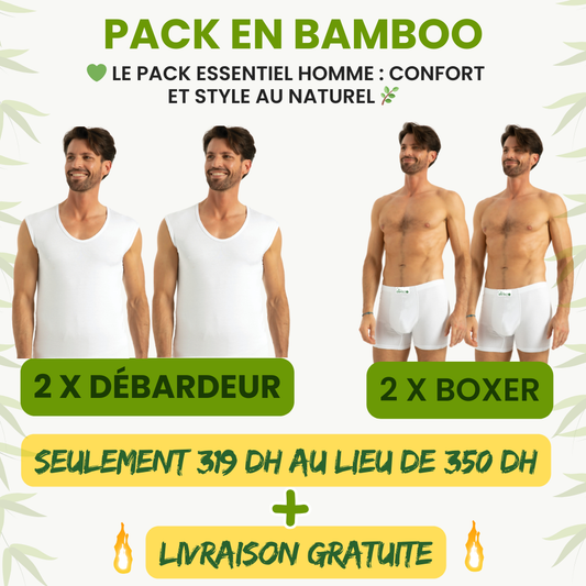 Optez pour nos packs exclusifs en bambou et offrez-vous une expérience unique alliant confort, élégance et durabilité. Chaque pack est conçu pour répondre à vos besoins avec des sous-vêtements doux, hypoallergéniques et ultra-respirants. En choisissant le bambou, vous soutenez une mode respectueuse de l’environnement tout en profitant d’un confort incomparable. Faites le choix d’un bien-être au naturel et rejoignez la révolution Wear Bamboo dès aujourd’hui ! 🌱